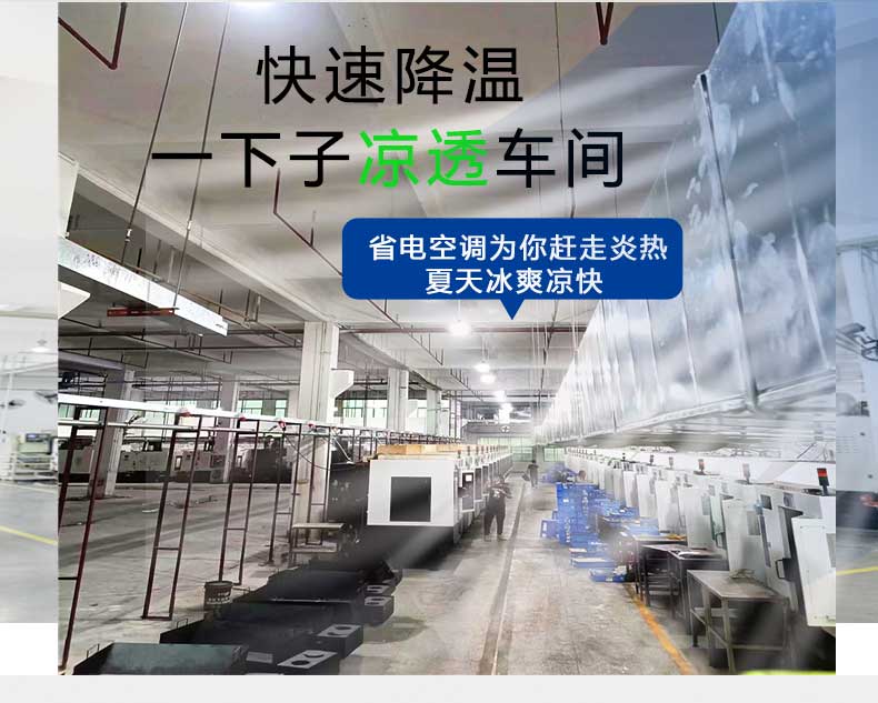 麻豆自拍视频降溫設計單台覆蓋100平方米的麵積,降溫1個小時隻需要1度電,1分鍾就能夠降低4-10度。而且還可以根據廠房的實際情況去設計不同的車間降溫方案。