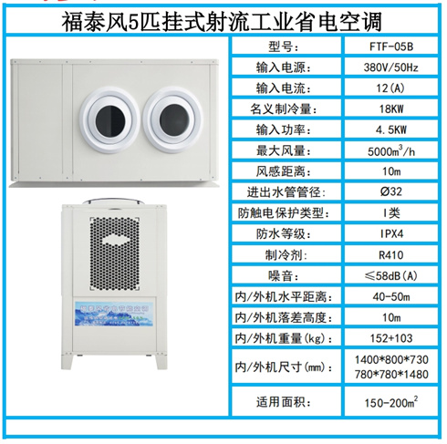 .節能省電、同等麵積安裝比傳統空調省電30~50%,覆蓋麵積大一台5P的可以覆蓋200個平方車間降溫,出風口溫度可以做到13-16度。車間溫度可做到20-26度適合人體體感溫度。