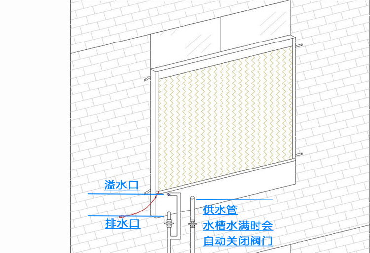 5、如發現濕簾供水不足或不均時,要檢查池中是否缺水,水泵是否運轉,以及供水管路和水泵入水口是否能過水,供水管路上的小孔是否堵塞,並檢查噴水管路是否位於濕簾的正中。正常的噴水高度應大於。